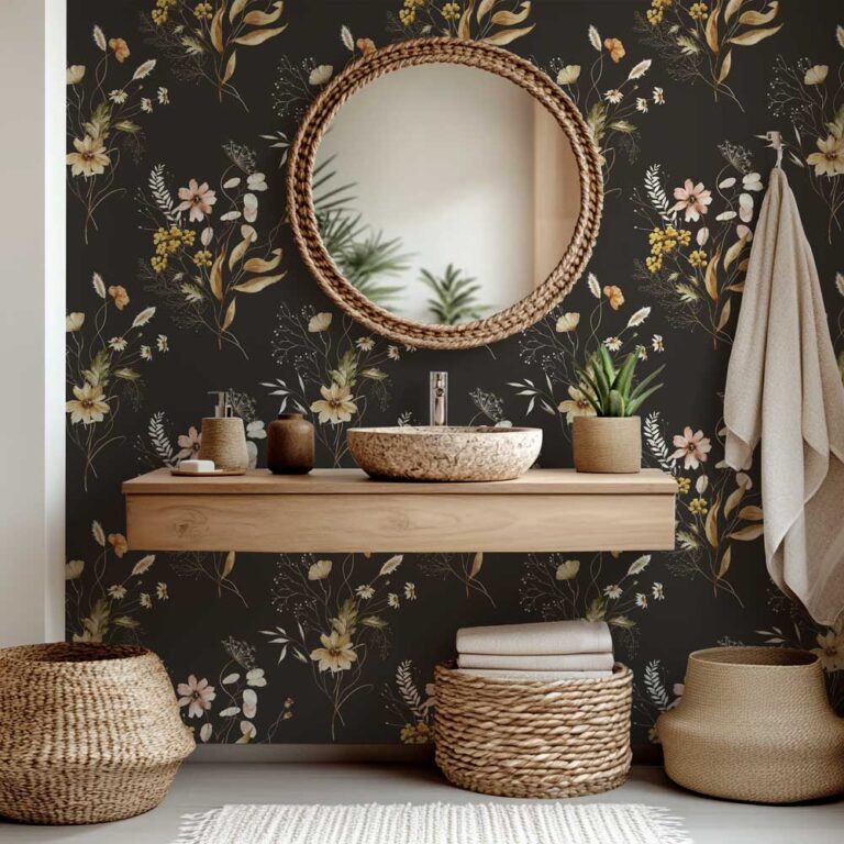 Badkamer behang Droogbloemen patroon