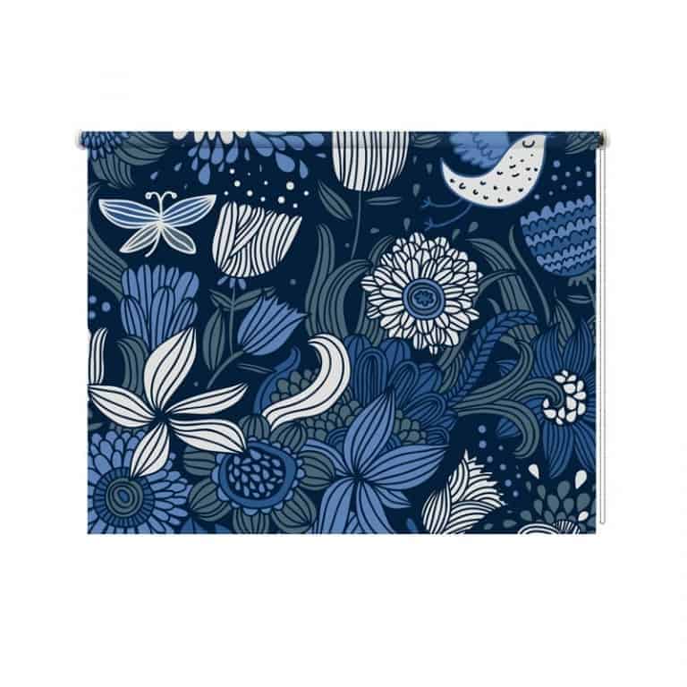 Rolgordijn Blauwe bloemen patroon