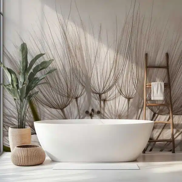 Laat je badkamer stralen met het badkamer behang Dandelion in lichte kleuren. De subtiele paardenbloemmotieven in frisse, zachte tinten brengen rust, licht en ruimte in elke badkamer. Een stijlvolle keuze voor wie houdt van natuurlijke details en een serene sfeer in de badkamer.