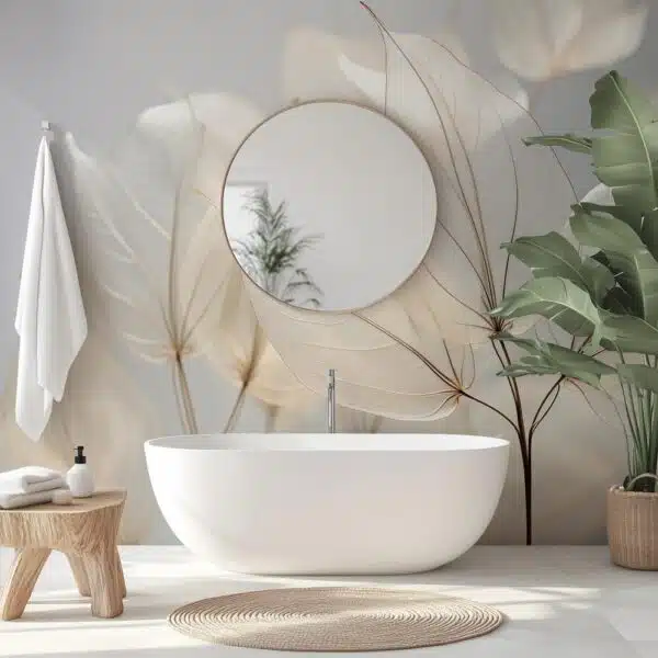 Breng een frisse en natuurlijke uitstraling in je badkamer met het badkamer behang Lichte bladeren in detail. De subtiele print van bladeren in zachte, lichte tinten zorgt voor een rustgevende en elegante sfeer. Dankzij het gedetailleerde ontwerp voelt de ruimte groter en lichter aan, waardoor je badkamer een serene en stijlvolle uitstraling krijgt.