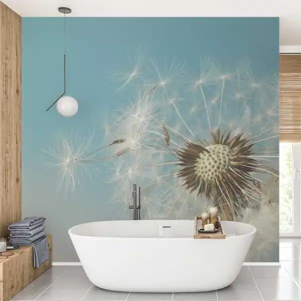 Jouw badkamer is toe aan opknapbeurt? En heb je liever iets anders dan alleen tegels aan de muur? Dan is het badkamer behang Paardenbloem in de wind precies wat je zoekt. Wanneer je het badkamer behang voorziet van een extra finish laag, dan zorg je ervoor dat het behang beschermt is tegen vocht. Daardoor kan dit behang ook in vochtige ruimtes geplakt worden.
