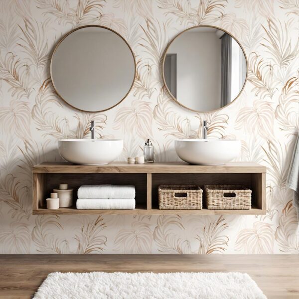 Geef je badkamer een rustige, luxe uitstraling met Badkamer behang Palmbladeren in zachte tinten. Dit stijlvolle behang brengt direct een ontspannen spa-gevoel in huis, dankzij het subtiele palmmotief en de natuurlijke, zachte kleurtonen. Perfect voor wie houdt van een frisse, moderne badkamer met een vleugje natuur.