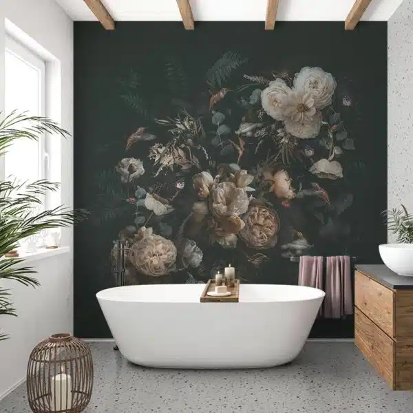 Jouw badkamer is toe aan opknapbeurt? En heb je liever iets anders dan alleen tegels aan de muur? Dan is het badkamer behang Schilderij van bloemen precies wat je zoekt. Wanneer je het badkamer behang voorziet van een extra finish laag, dan zorg je ervoor dat het behang beschermt is tegen vocht. Daardoor kan dit behang ook in vochtige ruimtes geplakt worden.