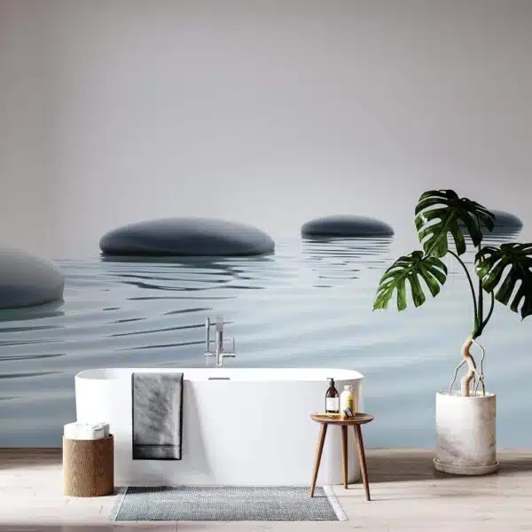 Jouw badkamer is toe aan opknapbeurt? En heb je liever iets anders dan alleen tegels aan de muur? Dan is het badkamer behang Stenen op water precies wat je zoekt. Wanneer je het badkamer behang voorziet van een extra finish laag, dan zorg je ervoor dat het behang beschermt is tegen vocht. Daardoor kan dit behang ook in vochtige ruimtes geplakt worden.
