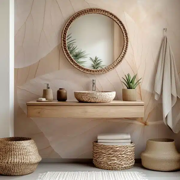 Voor ons badkamerbehang adviseren wij een speciale behanglijm geschikt voor vochtige ruimtes. Ons advies: bezuinig daarbij niet, want je wilt toch dat het behang voor lange tijd goed blijft! De lijm zorgt voor een sterke hechting en is bestand tegen schimmelvorming en de hogere luchtvochtigheid in de badkamer. Breng de lijm rechtstreeks aan op de muur en volg de instructies op de verpakking voor het beste resultaat.