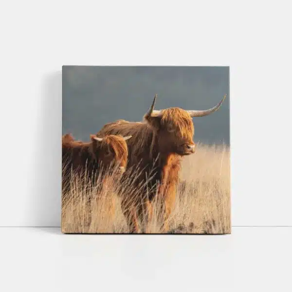 Ook zo’n mooi canvas Schotse hooglander met kalf aan de muur? Al onze canvasdoeken worden met veel zorg gemaakt. Je kunt kiezen uit diverse maten in staand, liggend en vierkant. Combineer de canvas met je meubels en andere accessoires en het geeft een unieke twist in jouw interieur!