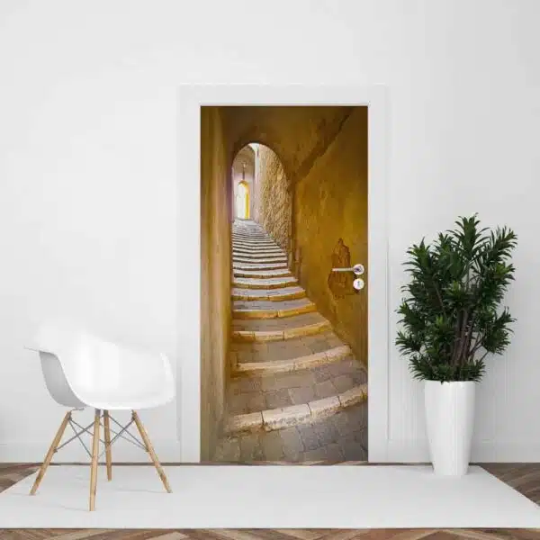 Nu bepaal je zelf wat er op jouw deur komt. De deursticker Italiaanse Poort met trap zorgt voor die sfeer waar je naar zoekt in jouw woonkamer, slaapkamer, badkamer, keuken of zelfs het toilet!