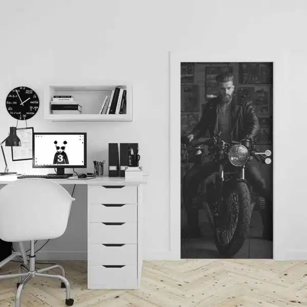 Nu bepaal je zelf wat er op jouw deur komt. De deursticker Stoere man op motor zorgt voor die sfeer waar je naar zoekt in jouw kamer! Een mooie print op de deur, dat wil je toch ook? De deurstickers van YouPri zijn van een hoge kwaliteit, eenvoudig te verwerken, krasbestendig en weerbestendig.