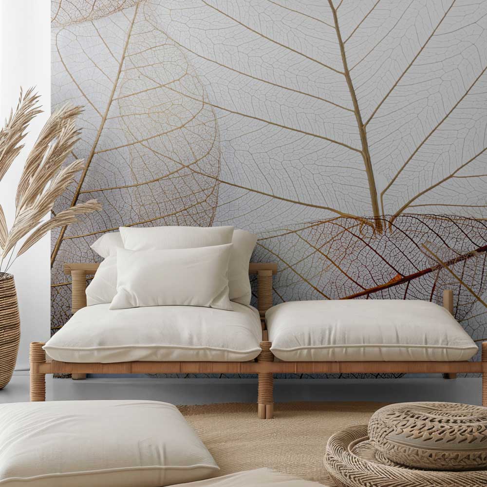 Ontdek de verfijnde schoonheid van de natuur tot in elk detail. Het fotobehang Bladeren met nerven legt de delicate structuren van bladeren vast op een artistieke manier. De fijne nerven en natuurlijke texturen zorgen voor een kalme, elegante uitstraling die perfect past in een modern, botanisch of minimalistisch interieur.