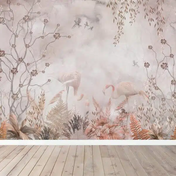 Breng tropische elegantie in huis met ons op-maat gemaakte fotobehang Flamingo op Botanische Achtergrond. Het design combineert sierlijke flamingoโs met weelderige botanische bladeren โ perfect als accentmuur in woonkamer, slaapkamer of kinderkamer.