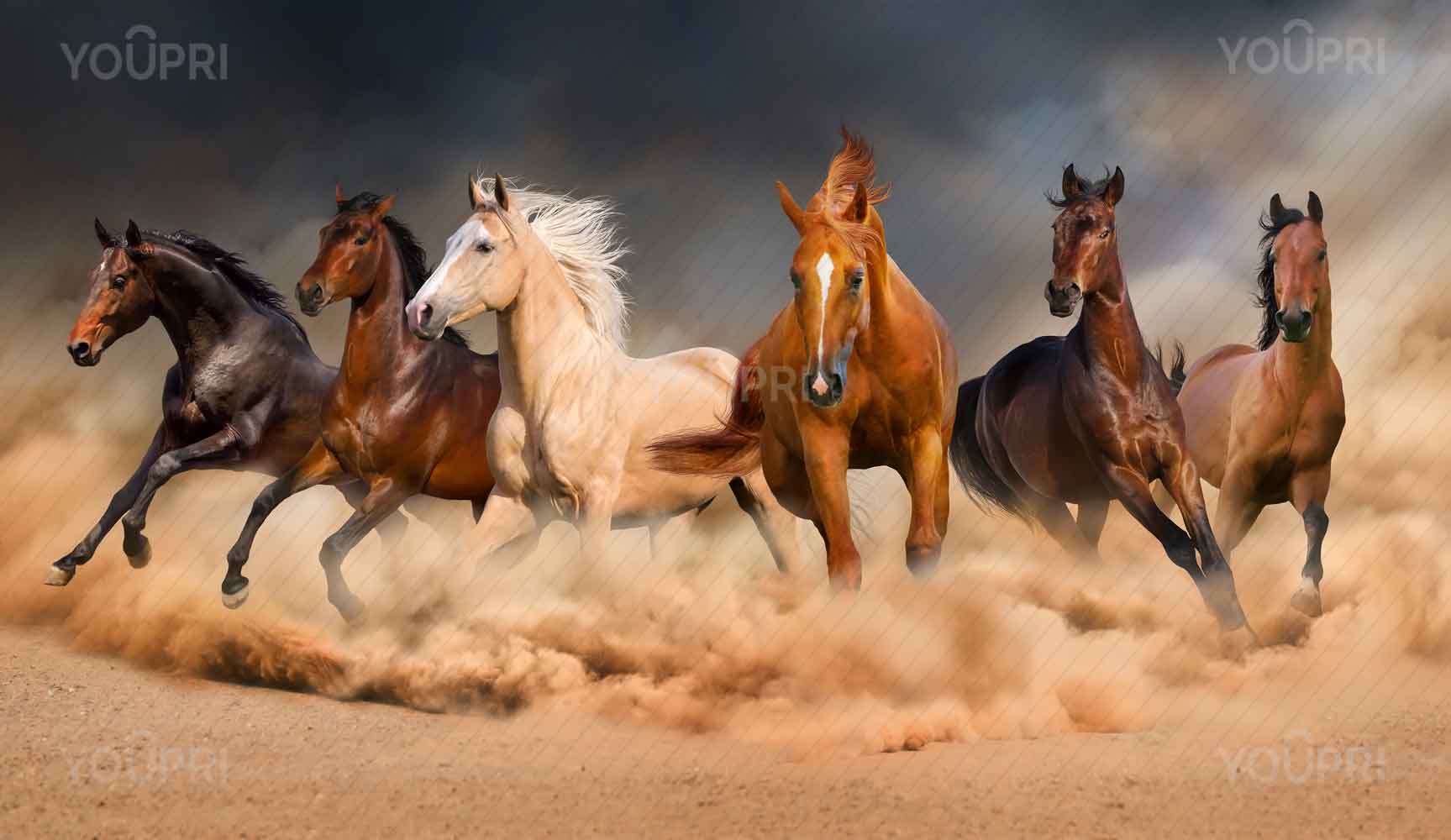 Beweging en kracht in je interieur met het fotobehang Galopperende Paarden. Een groep paarden die vol energie galoppeert, straalt vrijheid, dynamiek en elegantie uit, waardoor elke ruimte direct karakter en levendigheid krijgt.