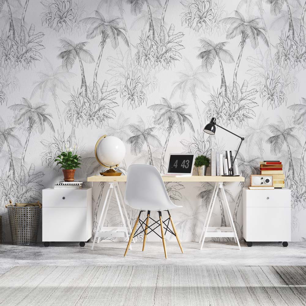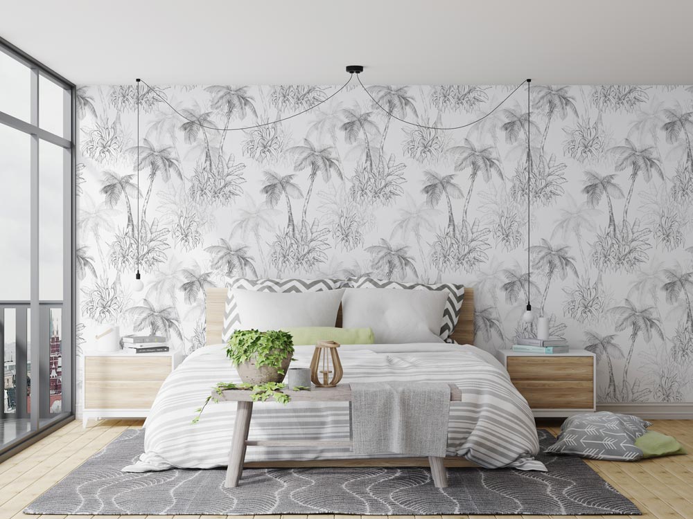 Of het nu in de woonkamer, slaapkamer of werkkamer hangt, Fotobehang Palmbomen Patroon zorgt direct voor een lichte, vrolijke en uitnodigende ambiance.