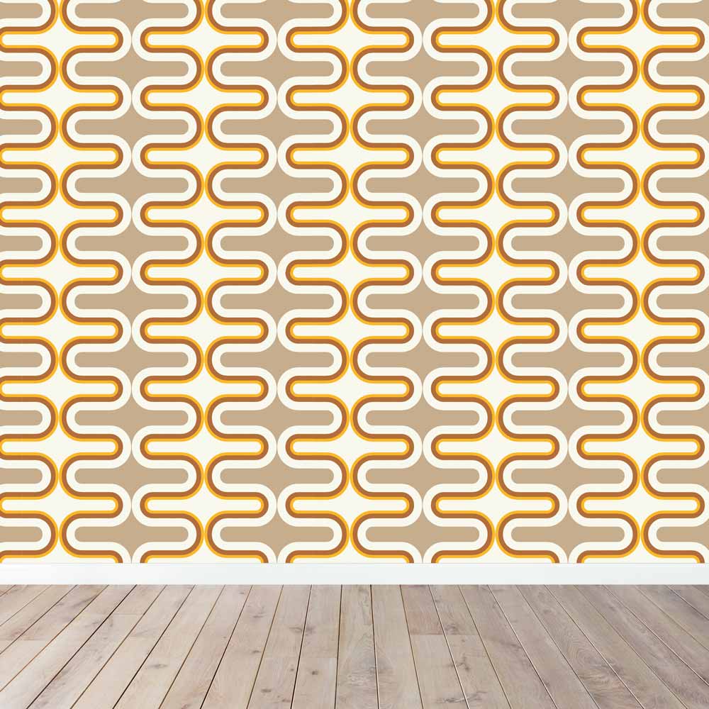 Of het nu in de woonkamer, hal of werkruimte hangt, Fotobehang Retro Patroon Beige Bruin zorgt voor een tijdloze, trendy en uitnodigende uitstraling.