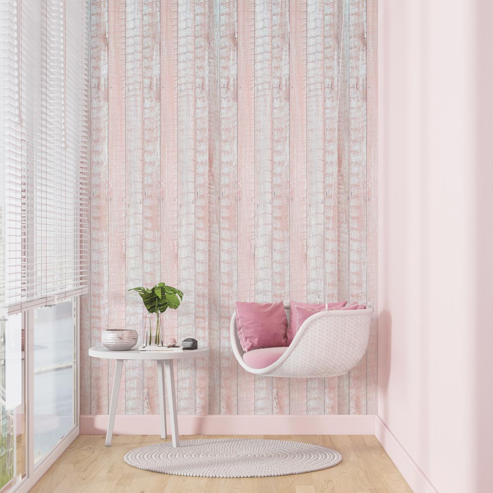Geef je interieur een zachte, sfeervolle touch met het fotobehang Steigerhout Roze. De realistische houtstructuur gecombineerd met subtiele roze tinten zorgt voor een warme, gezellige en moderne uitstraling.