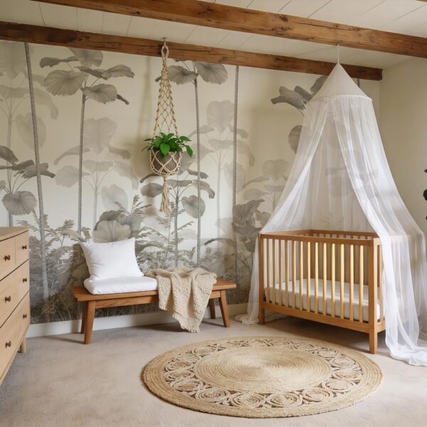 Het kinderbehang wordt op maat gemaakt, zodat het naadloos aansluit op de muren van de kamer. Dankzij de hoogwaardige print blijven de subtiele details en warme taupekleuren prachtig behouden, terwijl het materiaal duurzaam en eenvoudig schoon te houden is. Zo haal je een harmonieus, sfeervol en praktisch decor in huis dat zowel kinderen als ouders aanspreekt.