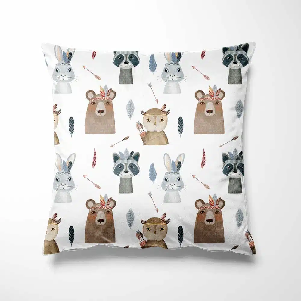 Dit kinderkussen Dieren indiaantjes is in verschillende maten verkrijgbaar. De afbeelding die je uitzoekt, passen wij aan naar de door jouw gekozen kussenmaat, zodat het ontwerp altijd perfect tot zijn recht komt.