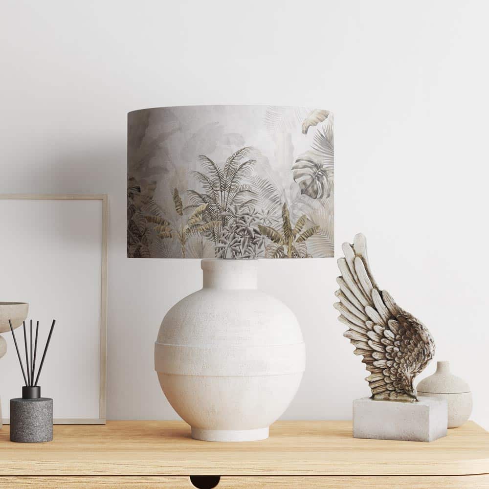 Breng de rust en charme van de natuur in huis met onze lampenkap Jungle in taupe. Deze stijlvolle lampenkap met subtiel junglepatroon in warme taupetinten past perfect in moderne, botanische én landelijke interieurs. Met deze lampenkap met print creëer je in elke ruimte een sfeervol lichtpunt dat de aandacht trekt.