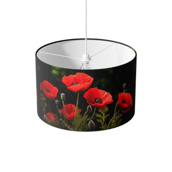 Geef je interieur een opvallend en stijlvol accent met de lampenkap Papavers op donkere achtergrond. Het intense contrast tussen de diepe, donkere achtergrond en de levendige rode papavers zorgt voor een elegant en dramatisch effect dat direct de aandacht trekt.