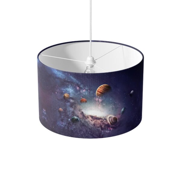 Laat je interieur stralen met de lampenkap Universum, een betoverend ontwerp dat de magie van de sterrenhemel en het heelal naar binnen brengt. Met fonkelende sterren, planeten en kosmische details creëert deze lampenkap een mysterieuze en sfeervolle ambiance die zowel rustgevend als inspirerend is.