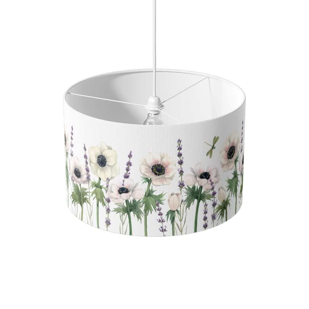 Breng een serene en elegante sfeer in huis met de lampenkap Witte anemonen. Het zachte ontwerp van witte anemonen op een rustige achtergrond geeft elke ruimte een frisse en verfijnde uitstraling.