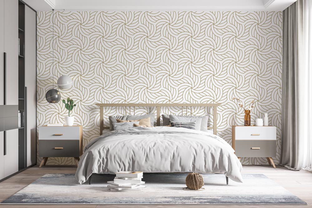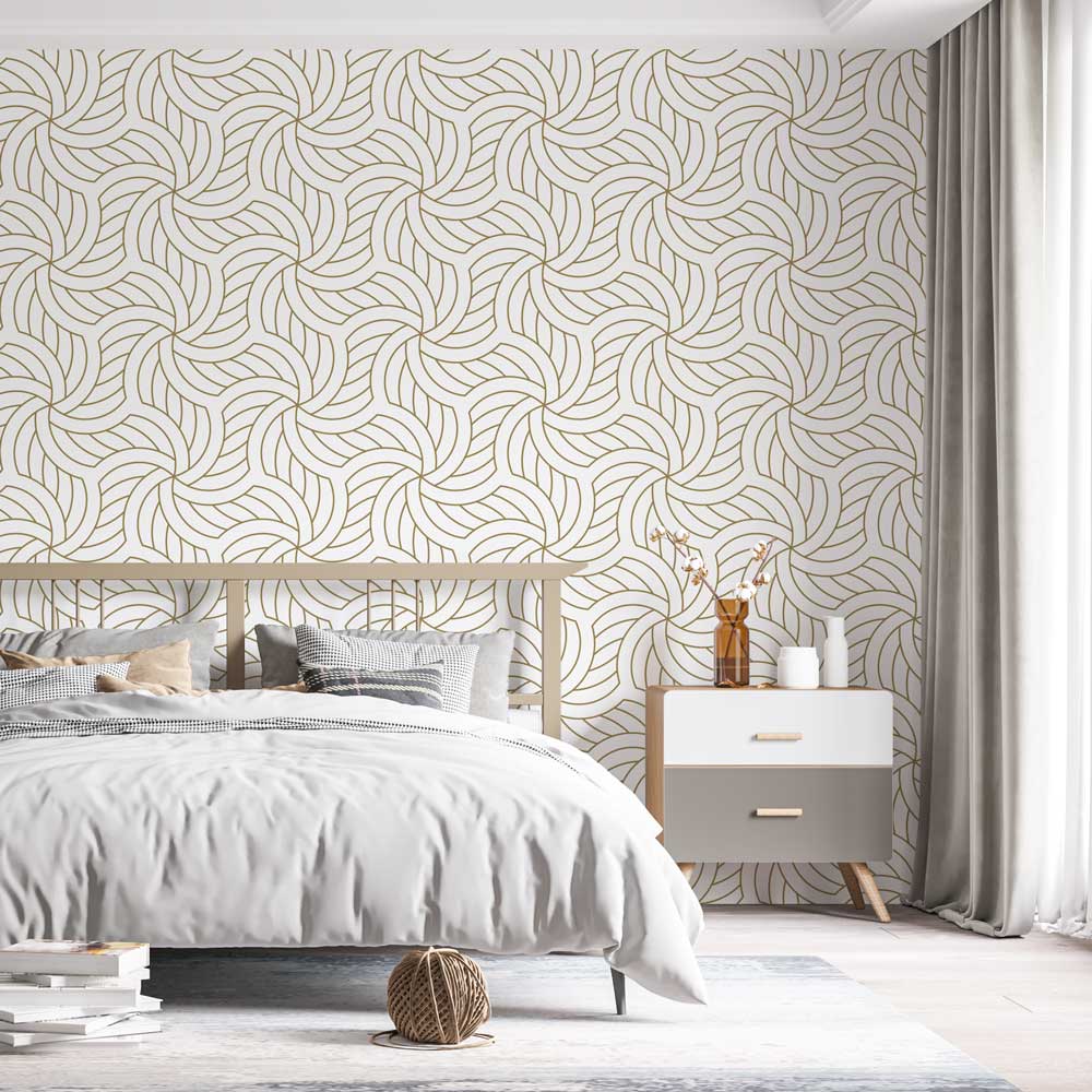 Breng beweging en stijl in je interieur met patroon behang geometrisch behang krullend. Dit patroon behang combineert strakke geometrische vormen met elegante, krullende patronen voor een moderne en speelse uitstraling. Perfect voor wie een accentmuur wil creëren of een complete ruimte een eigentijdse sfeer wil geven.
