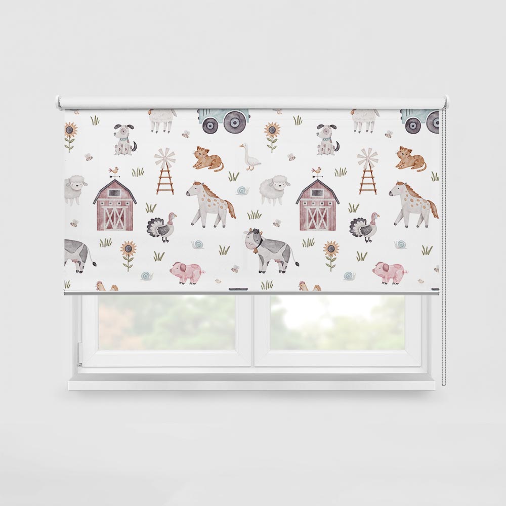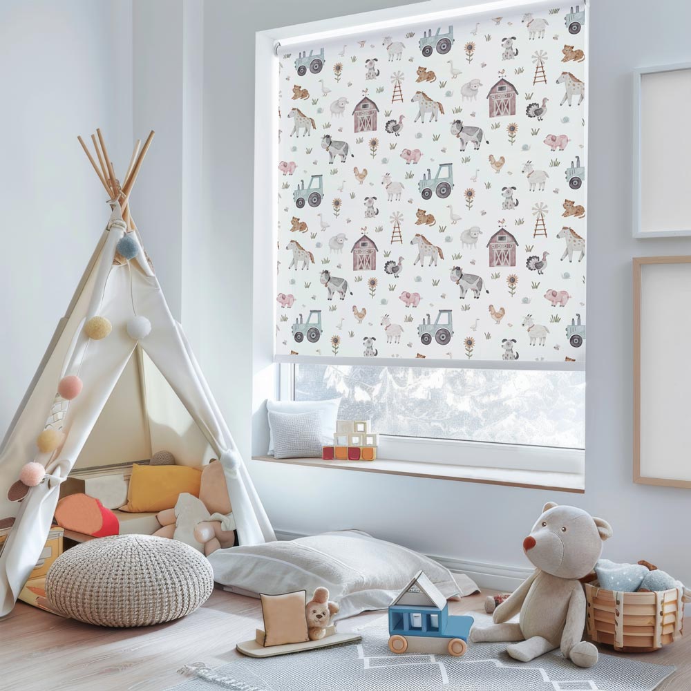 Haal het gezellige buitenleven naar binnen met het Rolgordijn Boerderij dieren. Dit sfeervolle rolgordijn voor de kinderkamer brengt een warme, landelijke uitstraling in elke ruimte en is perfect voor de kinderkamer of speelkamer. De vrolijke illustraties van boerderijdieren zorgen voor een speels en vertrouwd gevoel, waardoor de ruimte direct tot leven komt.