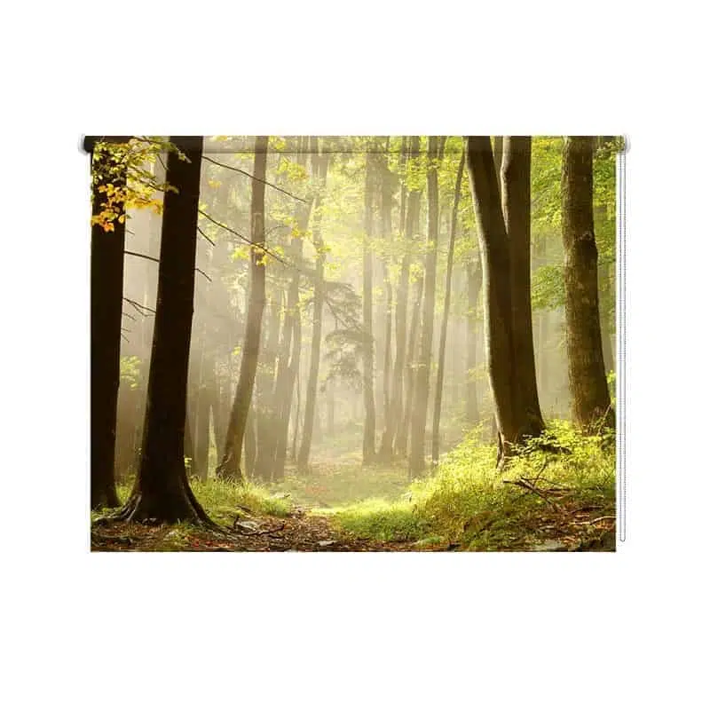 Specificaties van het rolgordijn Bospad in de ochtend