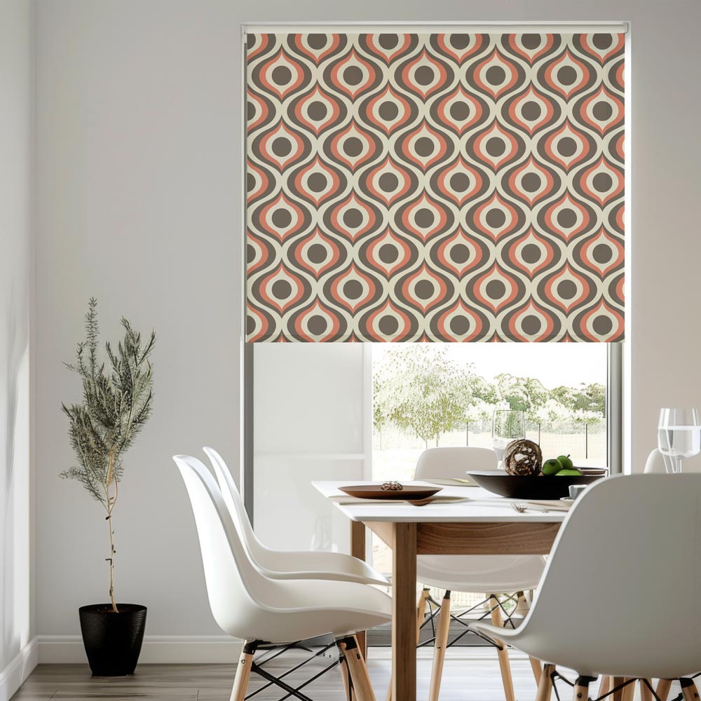 Geef je interieur een grafisch en karaktervol tintje met dit unieke rolgordijn Retro Patroon Druppel. Het speelse druppelpatroon in harmonieuze retrokleuren brengt een stijlvolle, vintage uitstraling in elke ruimte. Perfect voor wie houdt van opvallende patronen en een creatieve touch in huis.