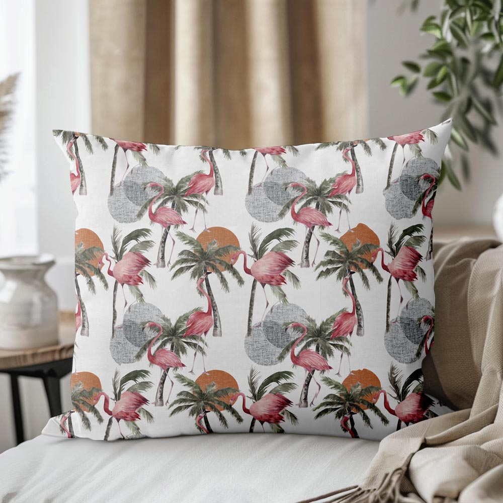 Breng zomerse vrolijkheid in je interieur met het Sierkussen Flamingo Tropisch. Het speelse ontwerp met sierlijke flamingo’s en weelderige tropische bladeren zorgt voor een levendige en zonnige sfeer in elke kamer.