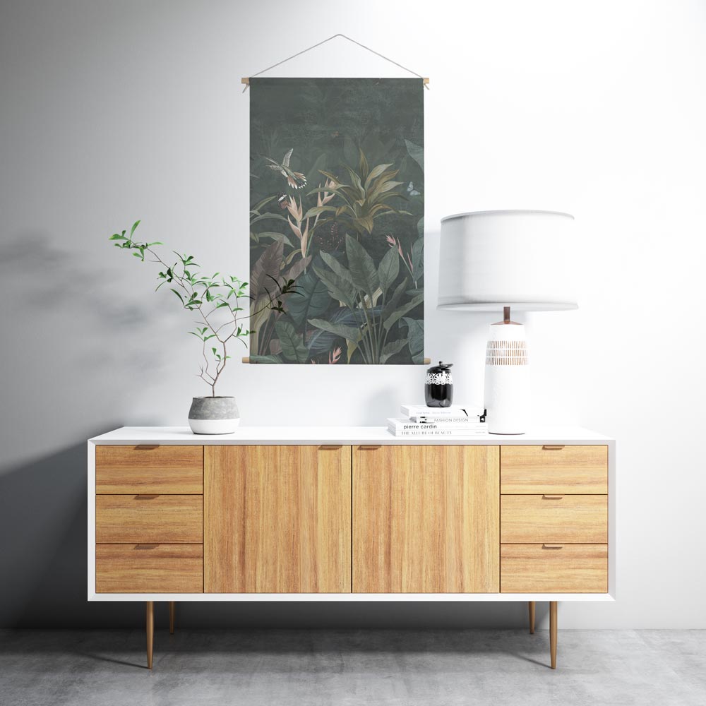 Op zoek naar een uniek en op maat gemaakte textielposter? Bestel vandaag nog jouw textielposter Jungle met vogels.