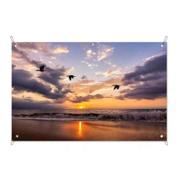 Een tuinposter Vogels bij zee zonsondergang is dé ‘finishing touch’ voor jouw tuin! Hang de poster aan een schutting, of aan de muur, of misschien in jouw terrasoverkapping en je hebt er zeker nog jaren plezier van. De trend van nu is om de tuinposter te bevestigen op een (zelfgemaakt) houten frame en dan op te hangen. Dit geeft nog meer sfeer in de tuin.